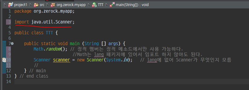 키워드 import와 패키지명을 생략하고자 하는 클래스의 이름을 패키지명과 함께 써주면 된다.
